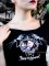 Corset underbust inspirado en el mundo del bdsm y realizado con raso de seda y cinchas de polipiel fijadas con remaches de metal. Tiene corte en la cadera, lo que acentúa aún más si cabe la figura decimonónica del "reloj de arena". . Se adorna en el panel central con dos arandelas de metal, sujeta con 4 cinchas de polipiel cada una. A la vez, tiene tres cinchas, que enmarcan el pecho y se fijan a una arandela central y se sujeta a su vez en un collar de polipiel. Todo con remaches metálicos.